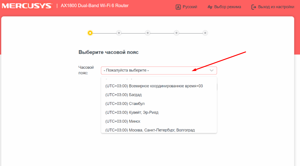 4. Переходим к настройке роутера. Выбираем часовой пояс.