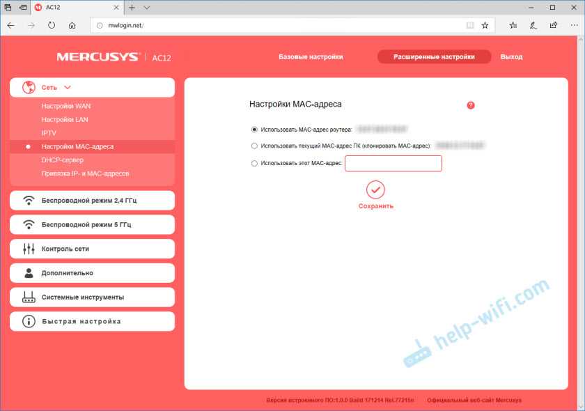 Сеть — интернет — Mercusys (клонирование MAC-адреса)