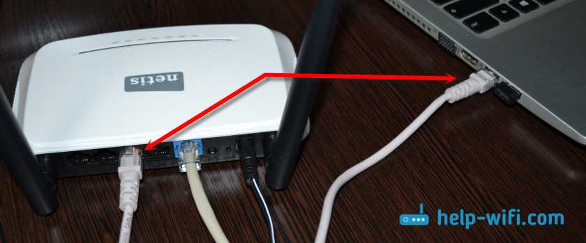 Дальше нужно подключится к роутеру с устройства, через которое вы планируете проводить настройку. Если у вас есть компьютер, или ноутбук с LAN портом, то лучше использовать его. С помощью кабеля, который идет в комплекте, соедините компьютер с Netis WF2419.