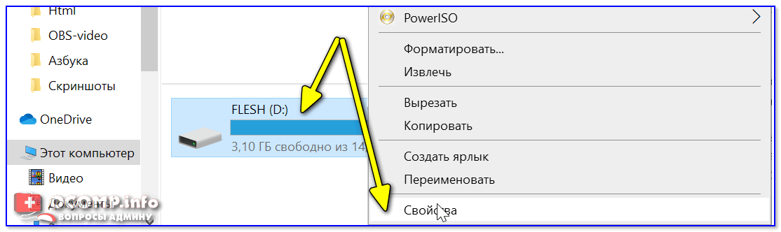 Пример: ПКМ по флешке / Меню проводника / Мой компьютер