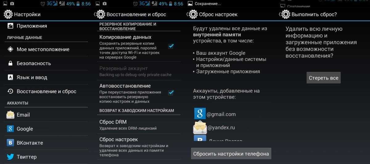 Важно! Сброс является самым радикальным методом, так как удаляет с телефона абсолютно все пользовательские данные. Следует тщательно все продумать и выполнить сохранение наиболее важных документов и фотографий