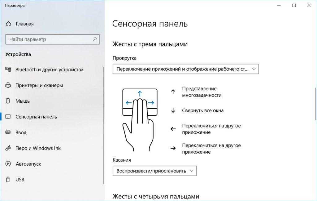 Раздел устройства / сенсорная панель / Windows 10