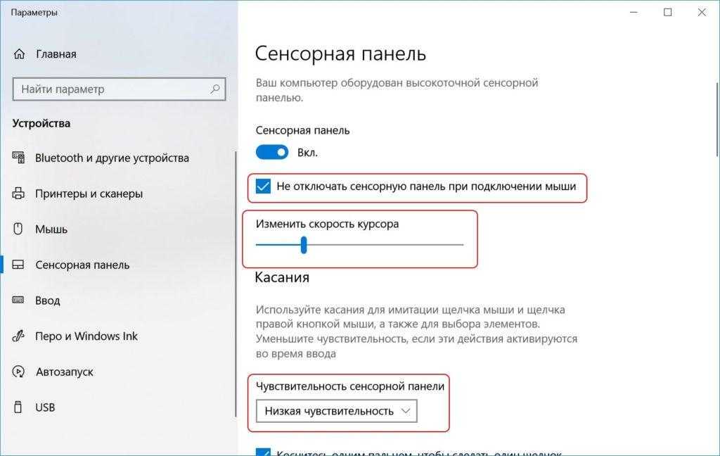 Отключить ненужные параметры сенсорной панели