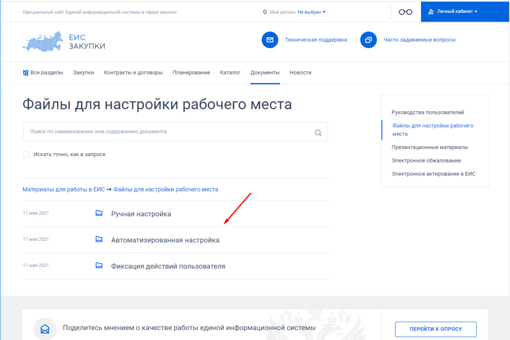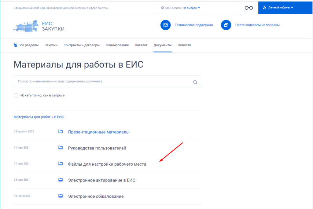 И так пришлось все рабочие места перенастраивать, выбор пал на Яндекс Браузер, так как Спутник очень далек от совершенства. Вариантов настройки два, либо все устанавливать вручную либо воспользоваться специально разработанным ПО которое все сделает за вас. Для этого на главной странице сайта, заходим в раздел «Документы» и выбираем пункт «Материалы для работы в ЕИС».