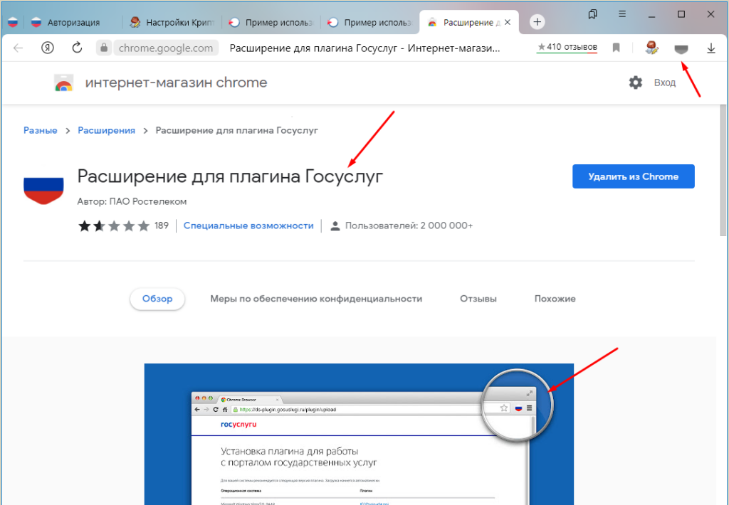 Далее необходимо установить расширение для гос услуг, его можно найти в магазине набрав в поиске «Расширение для плагина Госуслуг».