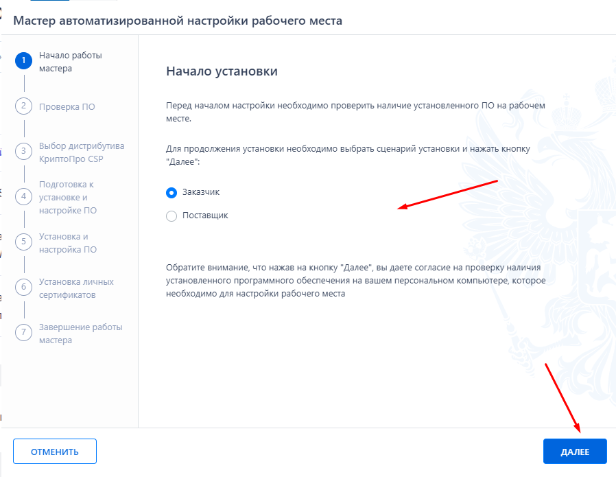 И так скачиваем специальное ПО и запускаем, выбираем как кто работает «Заказчик» или «Поставщик».