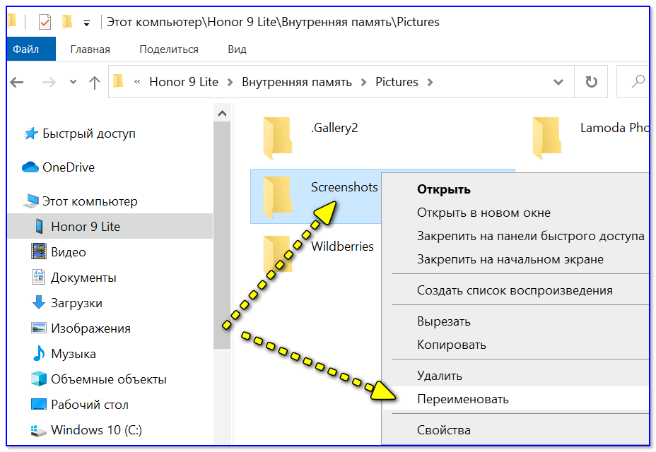 В ней нужно переименовать папку Screenshots (именно в нее по умолчанию должны сохраняться скриншоты). Если у вас в памяти телефона ранее не хранились никакие скрины — то ее можно просто удалить!