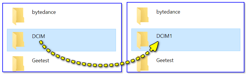 Тоже самое относится и к папке DCIM (в ней хранятся фото). Лучше, ее просто переименовать.