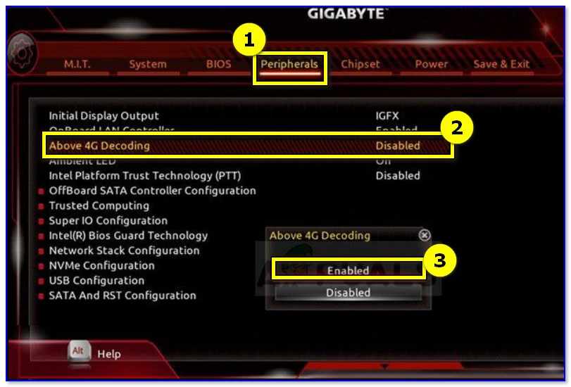 В настройках BIOS есть параметр, отвечающий 4G-декодирование адресного пространства — на MSI, Gigabyte платах он обычно называется, как ‘Above 4G Decoding’. В настройках BIOS его необходимо включить!