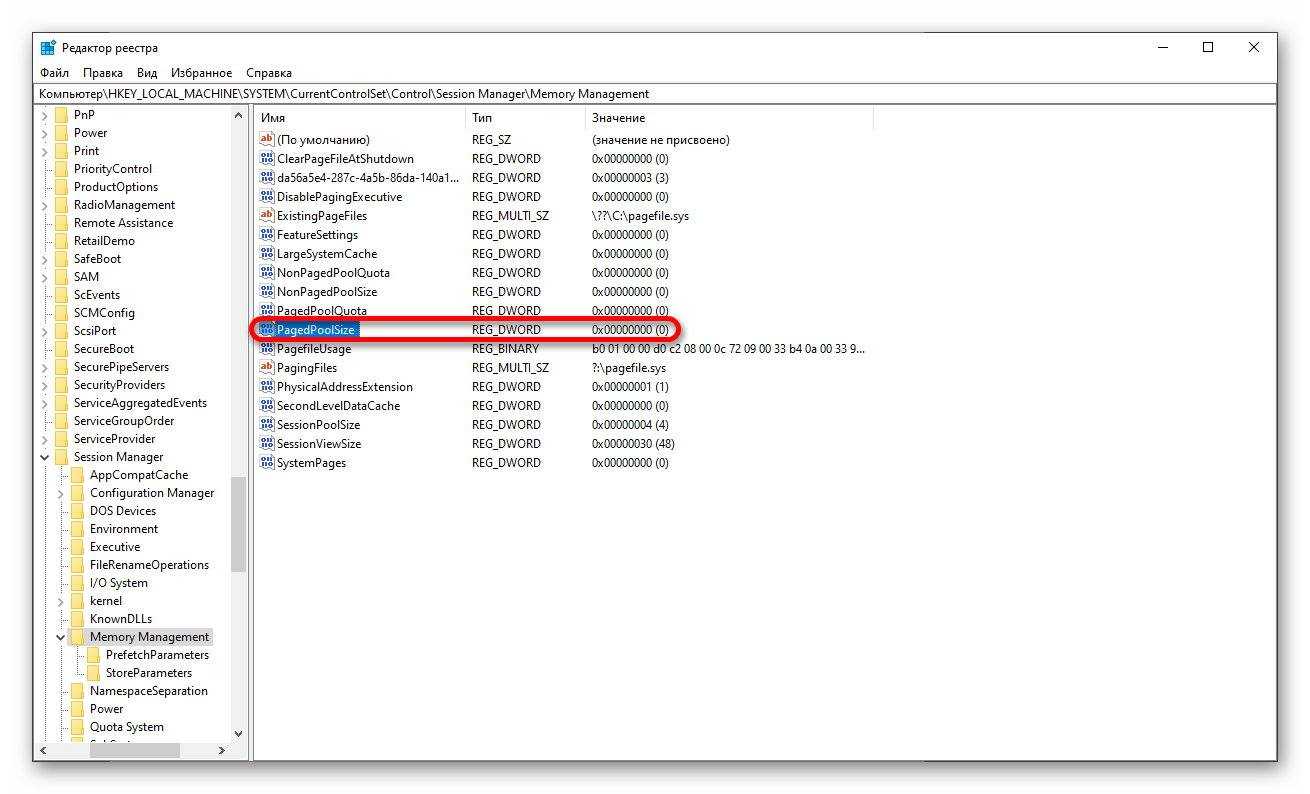 - Для параметров: PagePoolSize и PoolUsageMaximum установить значения «ffffffff» и «60» соответственно (для установки 60 потребуется переключить систему счисления в «десятичная»).