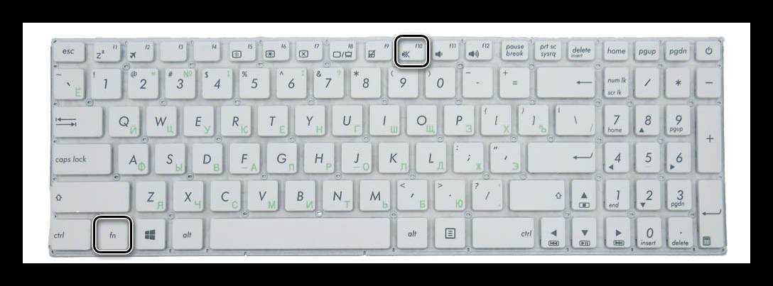 С ноутбуками всё достаточно просто. Практически на любой клавиатуре располагается такая клавиша как Fn. Она, как правило, находится в левом нижнем углу. На верхней части клавиатуры, где располагаются клавиши с F1 по F12, на двух из них должны стоять значки в виде динамиков.