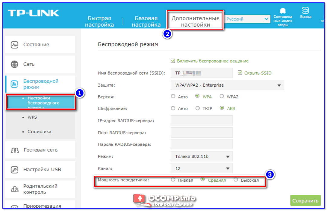 в настройках роутера, как правило, есть спец. регулятор мощности сигнала: при необходимости ее можно прибавить (более подробно о усилении Wi-Fi);