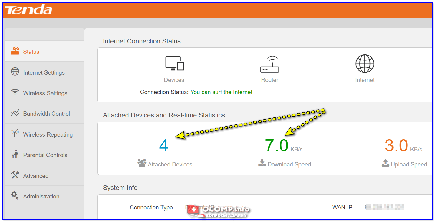Выше уже упоминалось, что на качество интернет-трафика влияет количество подключенных к модему устройств.