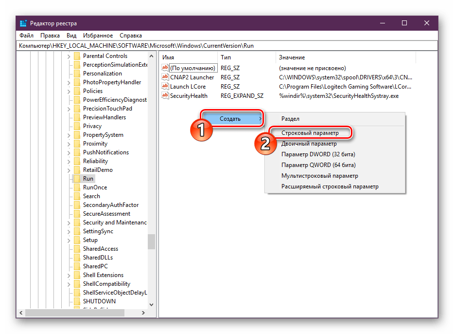 Если это значение отсутствует, щелкните правой кнопкой мыши пустое место и вручную создайте строковый параметр с любым именем.