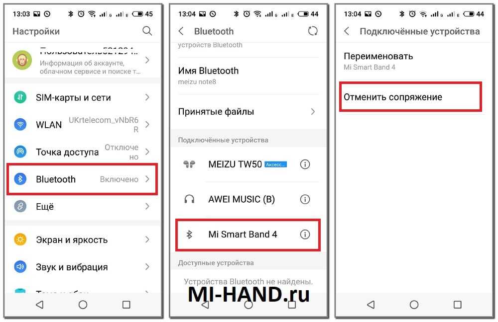 Инструкция описана на примере телефона Meizu Note 8. При отсутствии на ином устройстве функции отмены сопряжения следует очистить данные приложения Mi Fit. После проделанных действий нужно попробовать заново осуществить процедуру привязки.