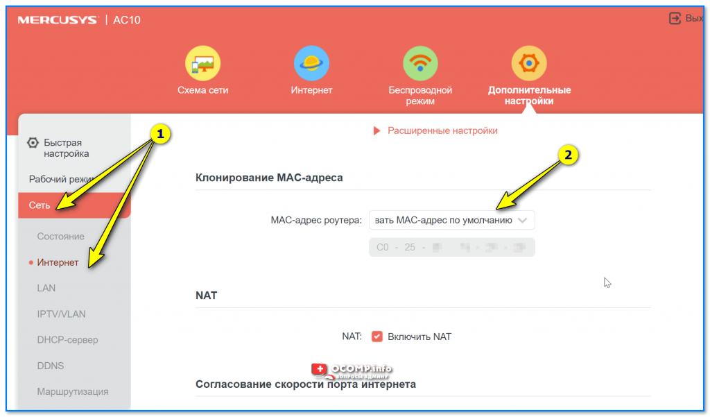 Пример 2. Сеть — интернет — Mercusys (клонирование MAC-адреса)