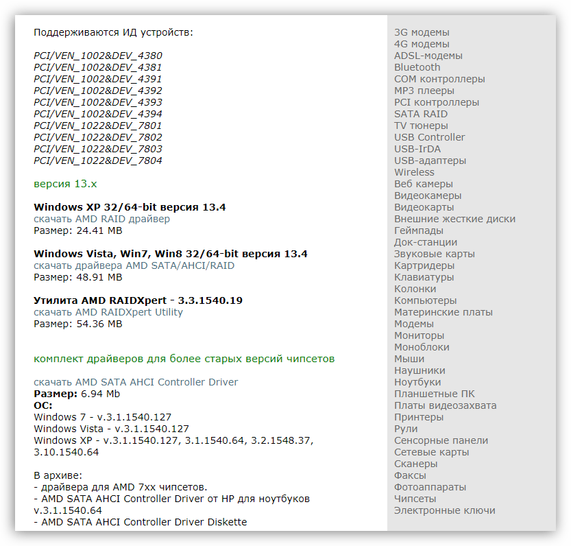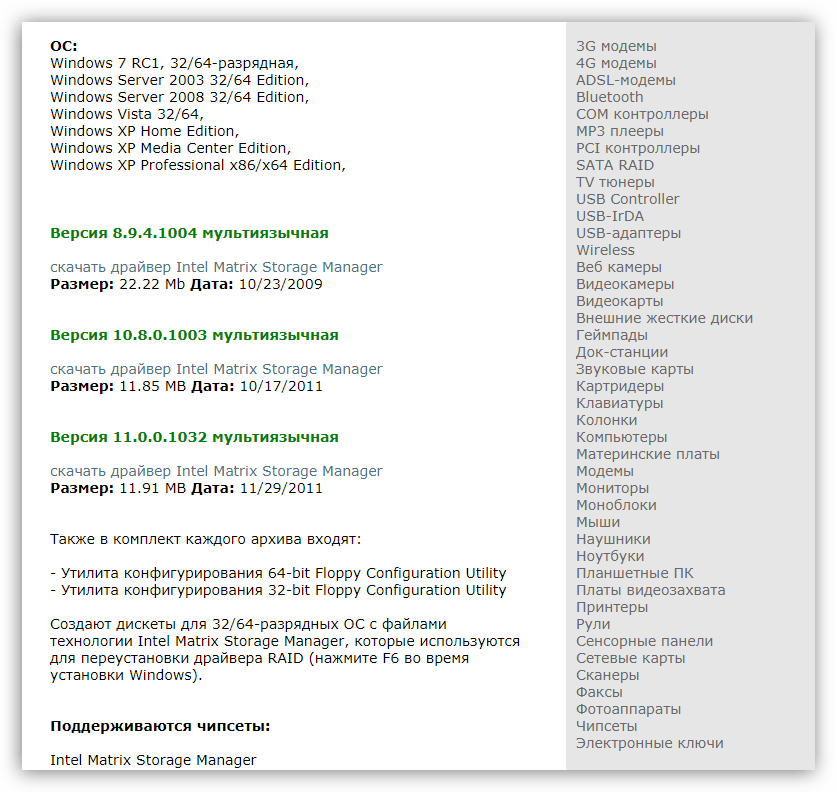 2) Найти необходимый драйвер на официальном сайте вашей материнской платы (или вашего ноутбука). В названии драйвера, обычно, указывается «SATA. » или «RAID. «.