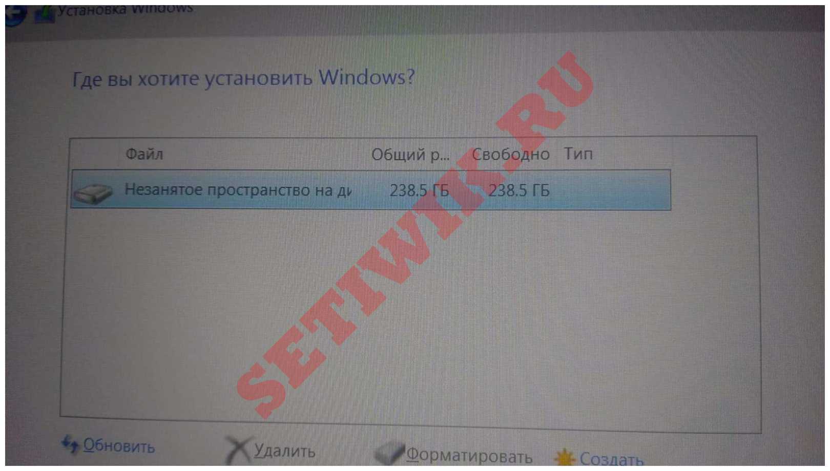 Далее Начните установку Windows 10 и на этот раз вы увидите свой SSD диск.