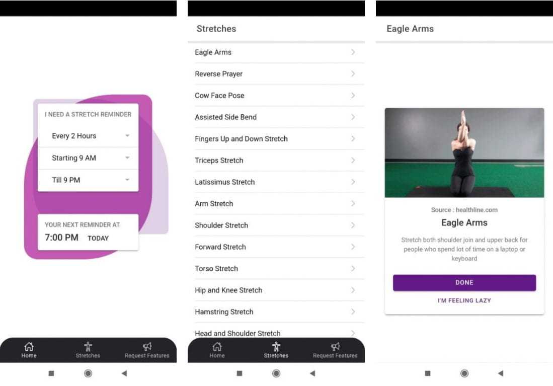 Приложение Stretchly недоступно на смартфонах, но это может быть приложение. Напоминание о растяжке Лучшее приложение, чтобы сделать перерыв. Он периодически отправляет ненавязчивые напоминания о необходимости отвести взгляд от экрана телефона и немного потянуться.
