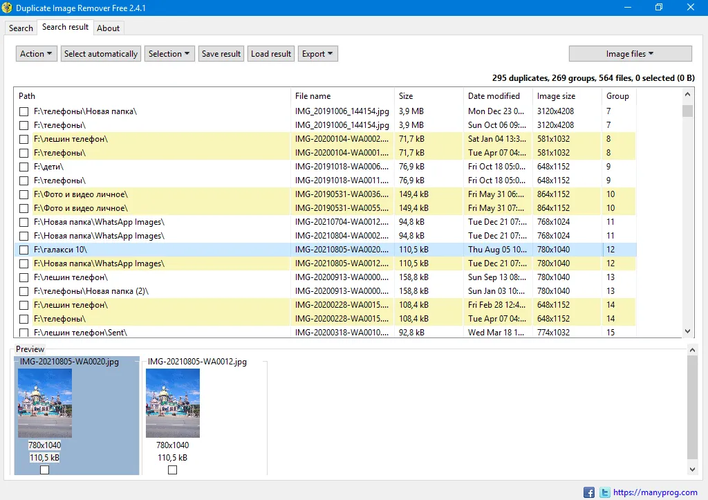 Image Comparer — это программа для поиска похожих и полностью одинаковых фотографий с возможностью дальнейшего удаления дубликатов.