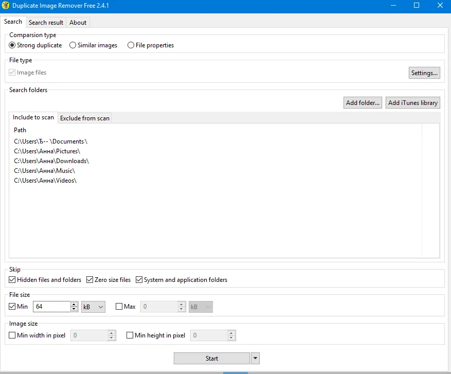 - Благодаря продуманной системе настроек программа может проводить поиск даже изображений дубликатов, имеющих меньший формат, разрешение и размер.