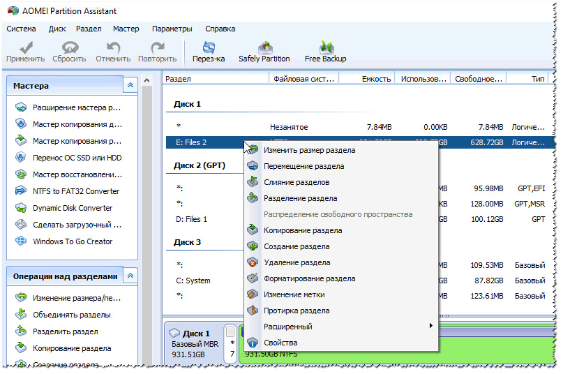 Aomei Partition Assistant — что можно сделать с разделом HDD