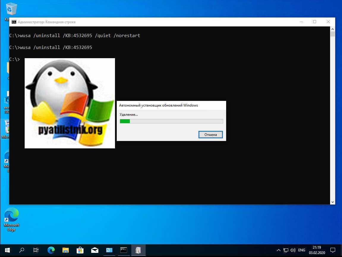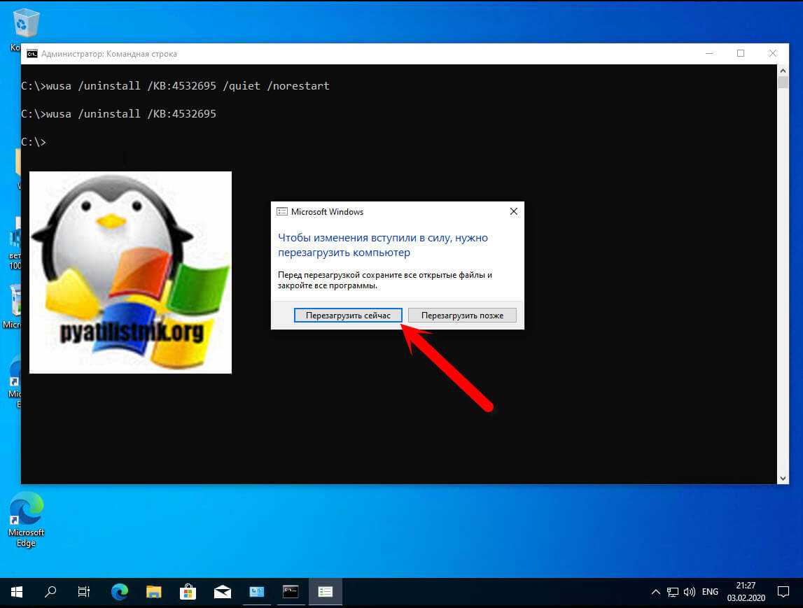 - Воспользоваться любым Live CD и удалить обновление через него.