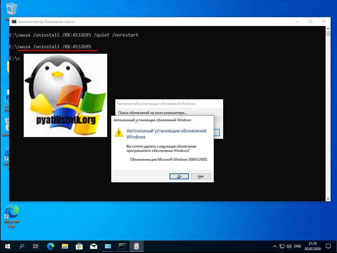 - Загрузиться в режиме восстановления Windows и попытаться откатиться на точку восстановления до установки обновления KB4532695