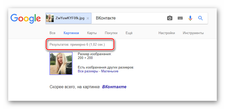 - Пропишите в поисковую строку «ВКонтакте» и круг поиска сузится до изображений, размещенных в данной соцсети.