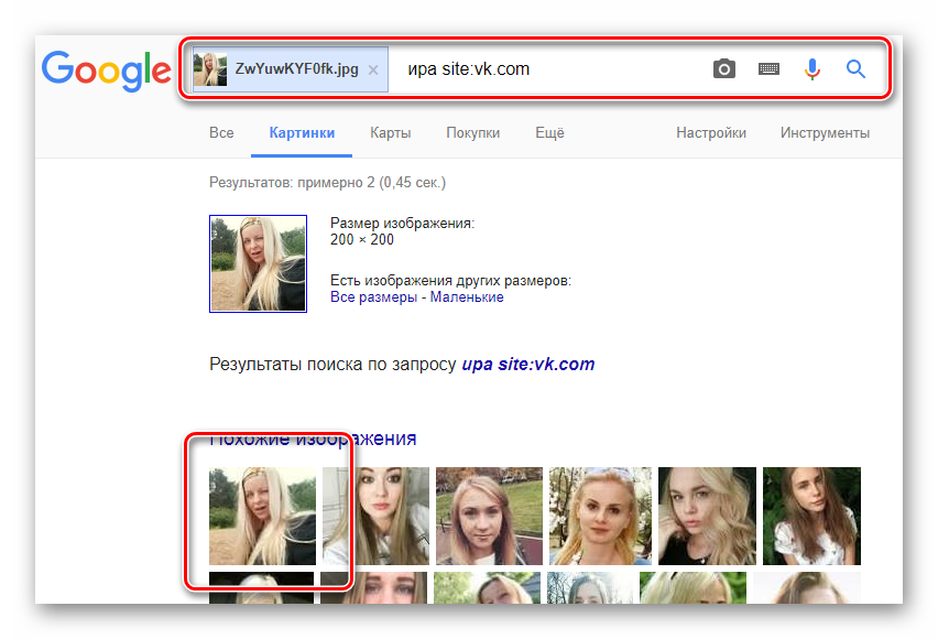 Этот метод VK позволяет вам найти страницу человека через , которая заключается в анализе загруженного фото и поиске других максимально похожих изображений. В этом случае страница пользователя должна быть видима как минимум для поисковых систем.