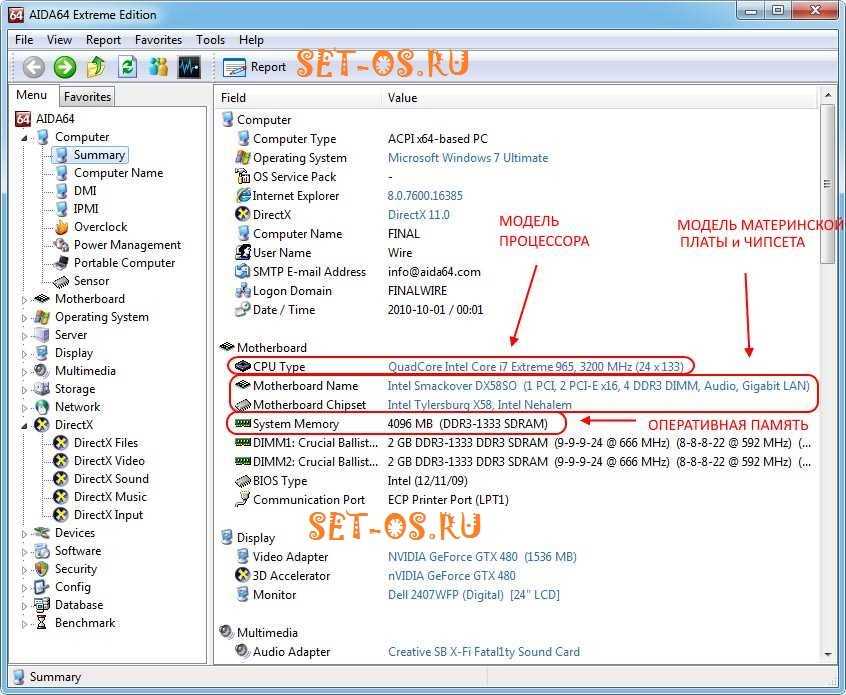 и т.п. Интерефейс у них примерно похожий. Заходим в сводку информации по установленному оборудованию «Summary» и смотрим в раздел «Материнская плата» (Motherboard), строчка «Системная память» (System Memory):