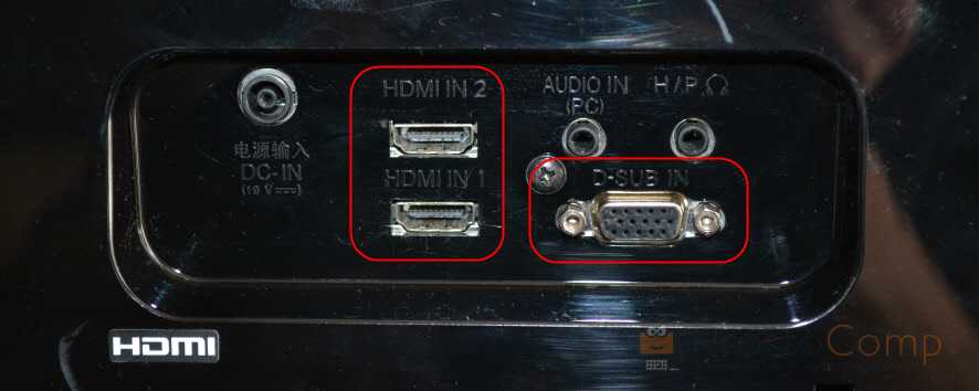 С ноутбуком разобрались. Смотрим теперь свой монитор. Какие там есть интерфейсы подключения. На моем мониторе есть два HDMI входа и один VGA (D-Sub).