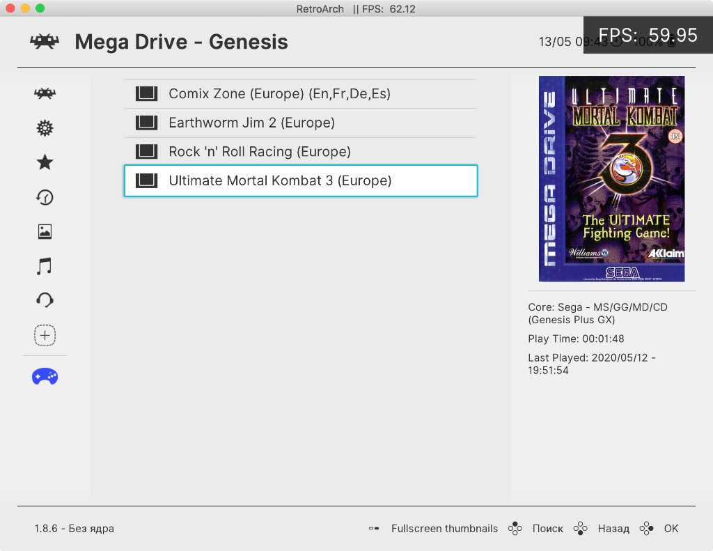 Попробовал OpenEmu, Nestopia и Genesis Plus (для старых Mac), но остановился на RetroArch. Как оказалось, это один из лучших эмуляторов консолей, который, в том числе, можно использовать на Mac. Кроме этого у него достаточно других преимуществ, но, что главное, это полноценное решение все-в-одном, которое закроет большинство потребностей.