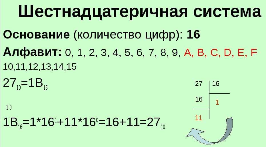 Двоичная запись чисел очень громоздкая, поэтому программисты предпочитают записывать числа в шестнадцатеричной системе счисления. Восьмеричная запись чисел сейчас используется очень редко.