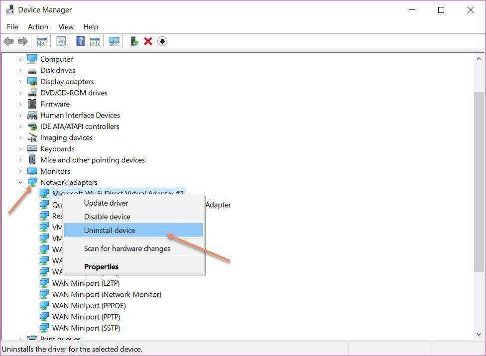 Эта ошибка также может быть вызвана неисправными сетевыми адаптерами. Вы можете попробовать переустановить сетевые адаптеры, чтобы решить эту проблему.