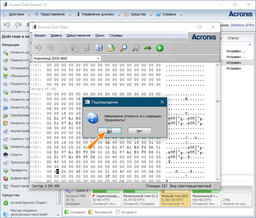 Указать путь к резервной копии сектора, согласиться на перезапись.