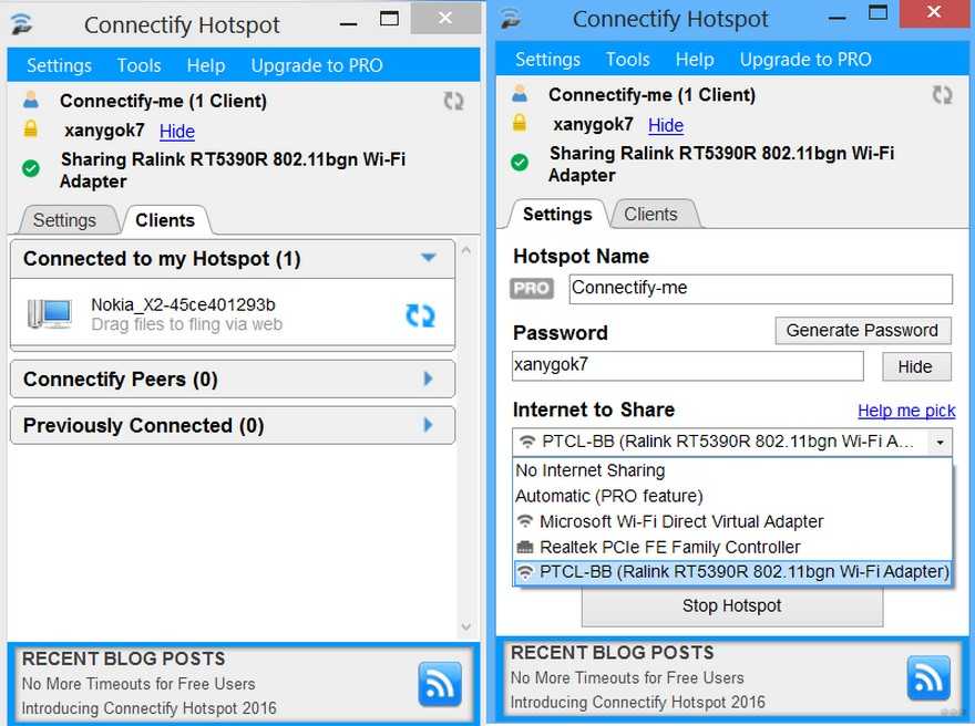 Зато, если выбрать платную модификацию, то в ней много полезных опций. Нет необходимости открывать общий доступ к интернету, в частности. Достаточно выбрать одно подключение и начать тестировать. Сразу после загрузки на жёсткий диск, можно устанавливать специальный файл и запускать программу. Дальше следует выбрать конкретное подключение. При необходимости меняется её название и пароль. В конце нажимается кнопка «Start Hotspot». Теперь ноутбук сможет раздать Wi-Fi. Можно открыть вкладку программы и своими глазами увидеть, какие к ней подключены дополнительные устройства. Предусмотрен статистический отчёт, сколько интернета какое устройство использует.