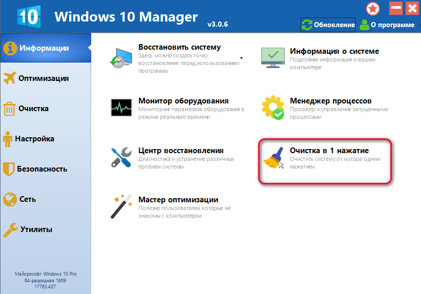Данная версия программы была создана специально для системы Windows 10. Но, существует и для 7, которая называется, соответственно — Windows 7 Manager. Отличная программа очистки системы. Также является комбайном, где присутствует всё в одном. От восстановления системы, где можно создать точку восстановления, до «Информации о системе», «Менеджере процессов и прочее».
