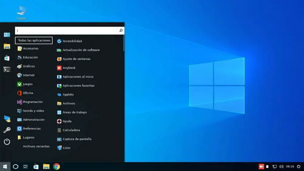 линуксфкс был разработан с намерение имитации внешнего вида и общей работы Windows 10. Таким образом, первое, что мы обнаружим при использовании этого дистрибутива, это то, что он использует рабочий стол, практически такой же, как и Microsoft Операционная система. Этот рабочий стол основан на Cinnamon и был модифицирован графическими библиотеками WXD, чтобы придать ему внешний вид, аналогичный рабочему столу Windows.