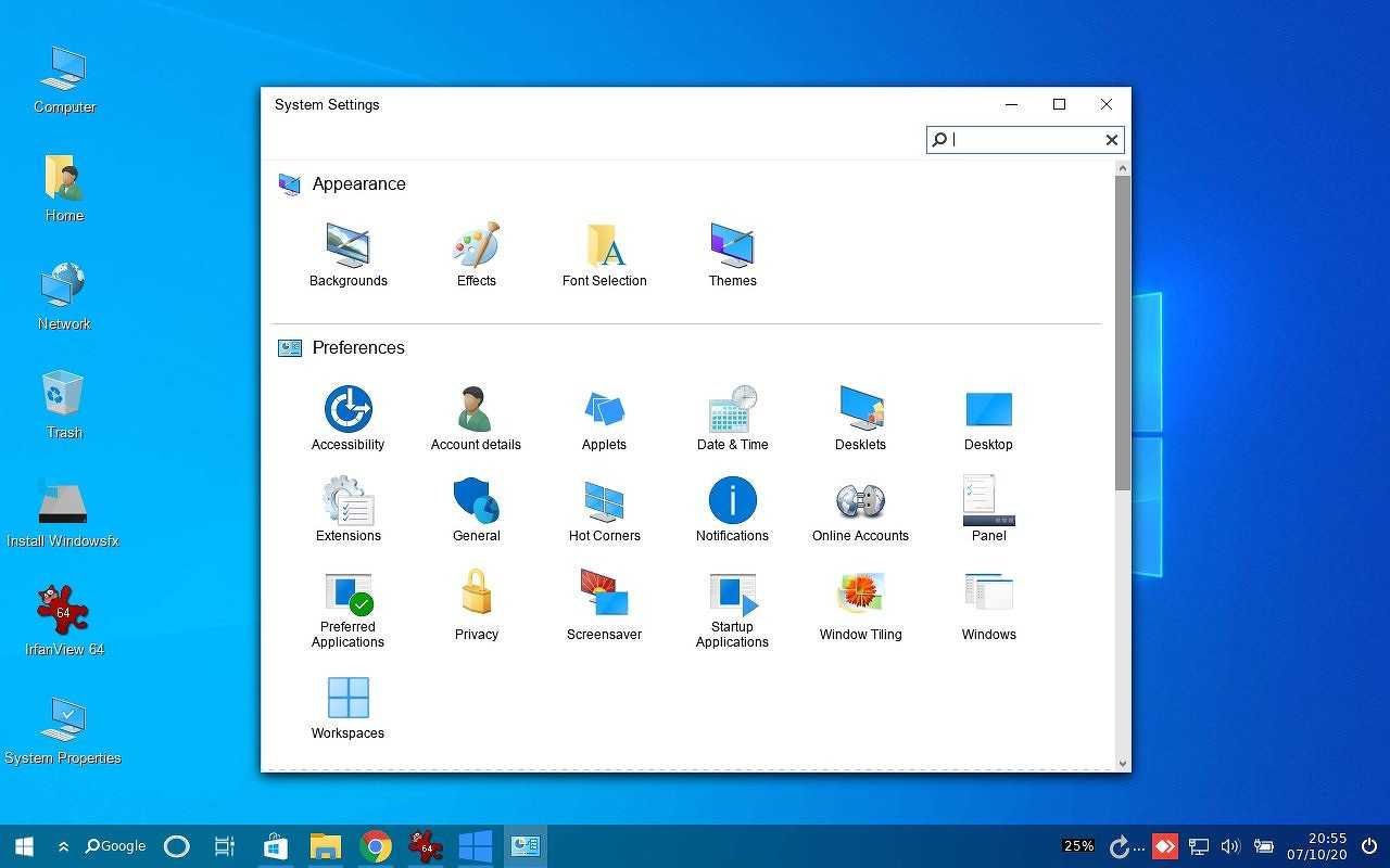 Так что если вы опытный пользователь, я думаю, вы также можете легко изменить внешний вид Linuxfx, настроив различные темы в панели управления.