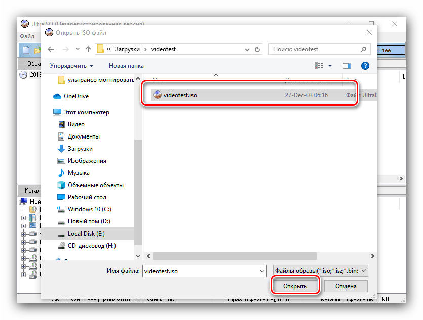 Далее указываем путь к образу, выделяем нужный файл и нажимаем «Открыть».