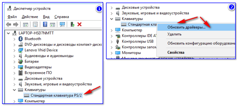 - сбой в драйвере клавиатуры — такое может быть в случае системного сбоя, например из-за некорректного завершения работы устройства или вредного действия вирусов. Если проверка на вирусы не помогла, то попробуйте обновить драйвер клавиатуры или сделать откат системы до точки восстановления.