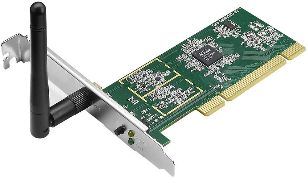 Словосочетание «Дёшево и сердито» как нельзя лучше подходит для описания адаптера ASUS PCI-N10. Эта модель стоит приблизительно 800–1000 рублей, однако по своим параметрам не уступает аналогам с ценой, большей в 3–5 раз. Главное преимущество устройства заключается в использовании особой технологии, позволяющей устанавливать его в качестве виртуального роутера, к которому можно подключить другой компьютер либо мобильный девайс. Такую схему нередко применяют малые предприятия — для расширения радиуса приёма сети Wi-Fi используются не дорогостоящие роутеры, а адаптеры для стационарных компьютеров.