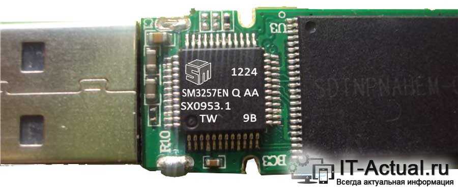 Обычно, чтобы вскрыть корпус флешки, нужен нож и отвертка. При вскрытии корпуса будьте аккуратны, чтобы не повредить внутренности флешки. Пример контроллера показан на скрине ниже.