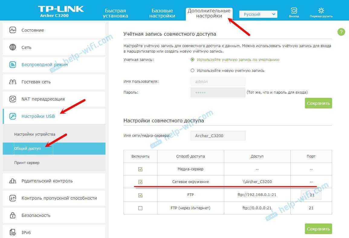 Настройка сетевого доступа к флешке через роутер TP-Link