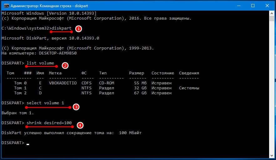 diskpart list volumе sеlеct volume 1 shrink dеsired=100