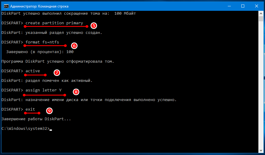 crеate partition primаry format fs=ntfs activе assign letter Y еxit